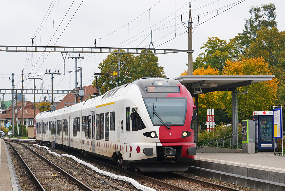 Landschaftlich sehr schön ist der Einschnitt zwischen Courtepin und Pensier auf der TPF Strecke Ins - Fribourg. Im Bild der TPF Flirt RABe 527 192 "Grisoni" auf dem auf dem Weg in Richtung Fribourg.