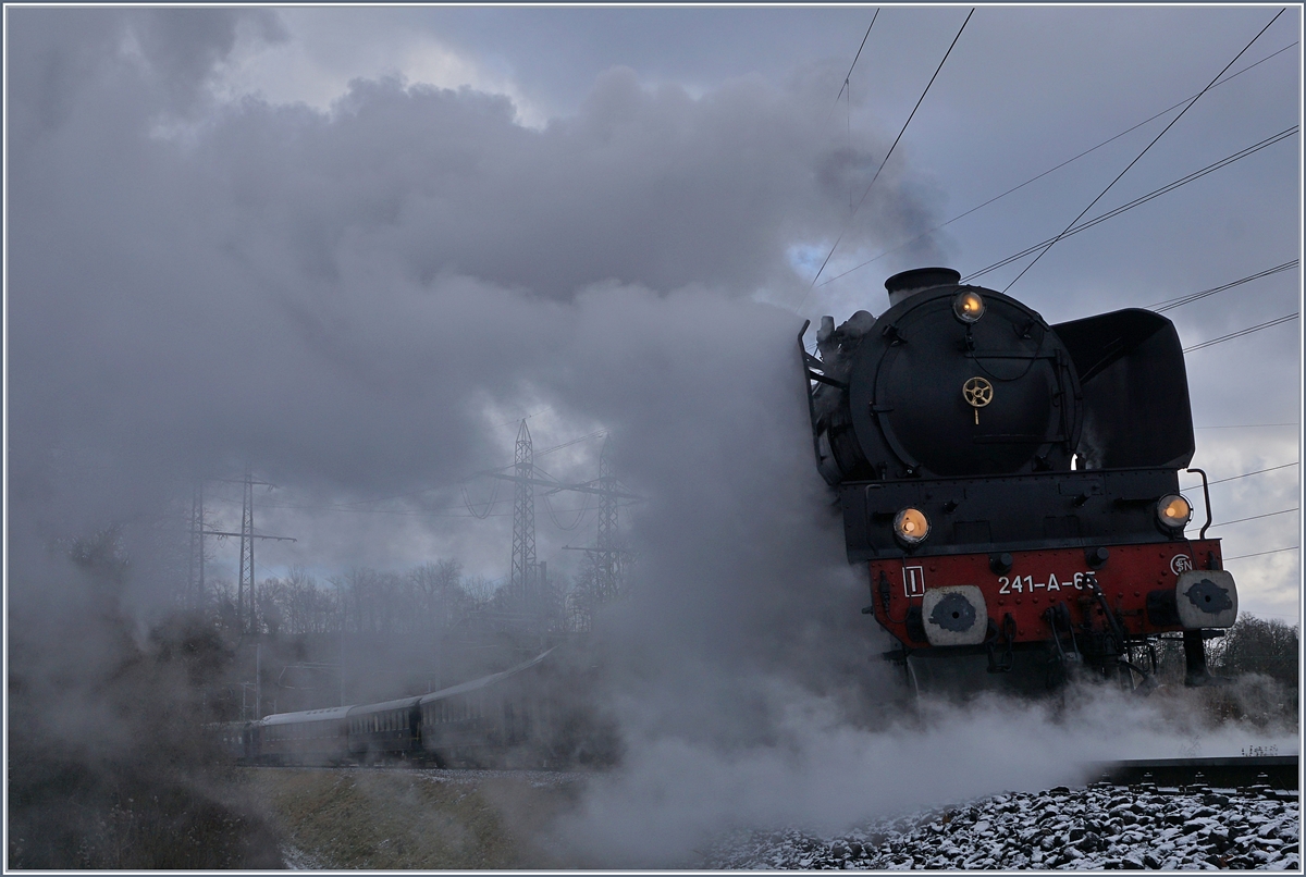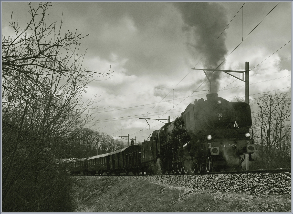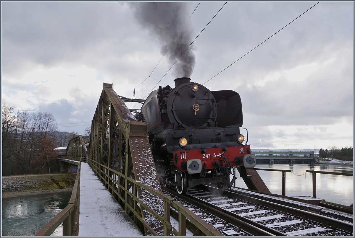 Die SNCF 241-A65 verlässt Koblenz mit dem Ziel Konstanz in Richtung Baden.